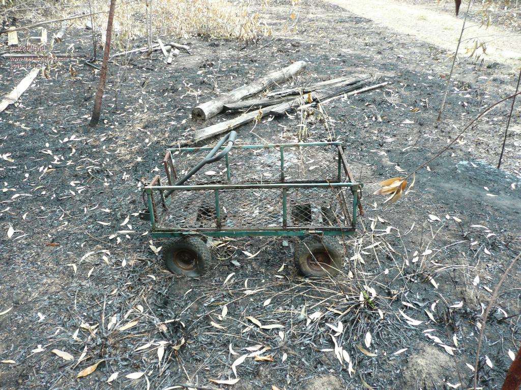 I think certain other actions we took may have helped our situation, Glenn may be able to comment.  We have a number of lesser value machines, an enclosed box trailer with a petrol genie  and compressor (next to shed); an old 4wd dumper converted into a forklift (was inside shed) ; not so cheap excavator grapple sitting on large steel trailer;  --  we moved these into the open where the ground was worn from driving to the sheds, spaced apart by 10m.  We believe these were saved.  A broken down machine with a 50hp deutz that was left with wattle growing around it was burnt (50m from shed).  Did we help the firies with our actions??? Dunno but they survived.