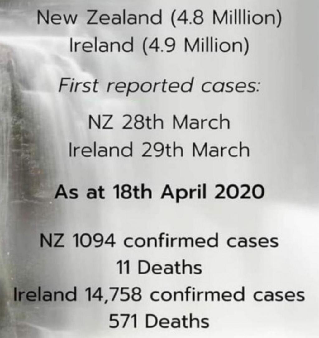But....what is going on with Ireland's government?  Perhaps a member from Ireland can clarify this for me.  NZ will enter level-2 tomorrow, with about 95% of everyone back at work, and the economy pretty much fully up and running again - including pubs and bars, but with a suggested social distancing.  Importantly though, those businesses can get rolling again, and we all love a good drink!