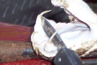 A bite from those fangs would be comparable to being stabbed by two curved, 1/4 inch diameter screwdrivers.