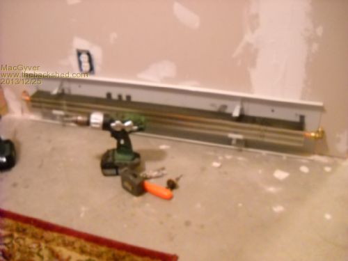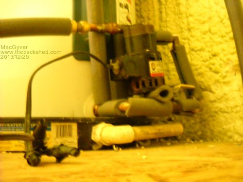 'Twas The Night Before Christmas And all through the house, not a creature was stirring, not even a mouse . . . oh, unless you count the rather large creature crawling around in the attic. That would be me. My hydronic heater core arrived today by UPS, so I decided to take advantage of some FREE HEAT as soon as I could. Where I live in Texas, the electricity provider, TXU, has a plan that sets your charge per kilowatt hour about half a cent higher, BUT lets you use all the electricity you can between the hours of 10 p.m. and 6 a.m. Electricity usage during that time slot is absolutely FREE and there's NO LIMIT to the amount you can use. Enter one larger-than-life retired plumber. That' would again be me. Anyway, "water" has a very high specific heat. The amount of heat it takes to raise one mole (a micro-millimute amount of water) one degree is 540 thousand! calories (540 KCal). That's a bunch. So what; who cares, you ask? Well, here's what: with FREE electricity for 8 hours a day and AT NIGHT no less, I can cook up a bunch of hot water and the water stores heat like almost no other common liquid (except oil maybe). I being a retired professional plumber, was able to design and install a "loop" system within my existing potable hot-water system and merely, with the flick of a switch (actually a timer), let the water heater cook while all the time, scalding hot water shuttles through my baseboard fin-'n-tube hydronic heater and my bedroom stays toasty warm with no muss, fuss or noisy fans. The only physical pump is the little one that makes the magic happen. It is on the return line right up against the base of the water heater in the attic space above my laundry room. You can't hear it run even if you're sitting right next to it! As the scalding-hot water passes through the central tube of the heater, the heat is collected by about a gerzillion aluminum fins. Once the fins are hot, the air between them heats up and as if by magic, becomes less dense and rises against gravity (hot air rises). This is called 'convection' and it "pumps" the air in my bedroom around and around, heating it on each cycle, whilst Teddy (my stuffed animal bed partner) and I snuggle warm as toast in bed. It doesn't get any better than this! :O) This is the "before" shot showing initial installation. All pipes are insulated within the walls and attic with closed-cell foam insulation. Voila'! This is the finished product mounted on an as-yet unpainted wall. It works like a champ! Here's that little pump. It's on a timer and cuts off a half hour before my free-electriity window ends. That gives the water heater time enough to recover and I get a free hot shower when I get up iin the morning. . . . . . Mac Nothing difficult is ever easy! Perhaps better stated in the words of Morgan Freeman, "Where there is no struggle, there is no progress!" Copeville, Texas |
