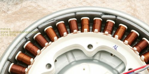 Ah yes, LG and not Fisher Paykel. The article concerning the history of Fisher Paykel on this site is very interesting; certainly their new 36 pole design is very similar to the LG model I am modifying. I have not seen the LG shaft and mounting arrangement you mention, although I have "Googled" for one. I would imagine the performance of the factory wound LG 36:48 motor is comparable the factory wound Fisher Paykel "Smart Drive" 36:48; both have similar gauge wire (0.53mm) with four layers of winding per pole - unless the Fisher Paykel uses considerably stronger magnets.