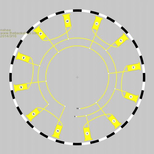I will be winding the stator for three phase power as instructed by Glenn. Here are some pretty diagrams I did in Adobe Illustrator...