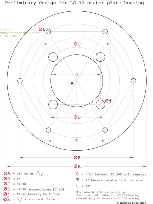 My 36 pole F&P stator does not have a central bearing hole like the older models I've seen; instead it has six 1/4" bolt holes arranged in a hexagon around the perimeter molding. Once drilled, the stator plate will be bolted to these; the other holes in the stator plate are for the FC205 bearing unit. I uploaded a CAD drawing of the stator plate in my original post - it's just that the stator plate is shown before drilling...