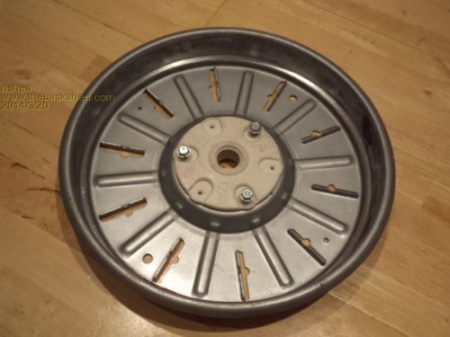 Note the remnants of the cracked ceramic magnets which I still can't shift - even with a chisel. Apparently, a blow torch will soften the glue to facilitate removal. But I'm worried that an uneven heat such as this might damage the rotor. An oven would be more gentle and even.