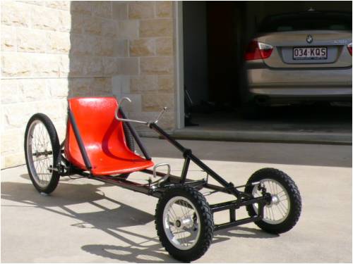 Thought I would post a couple of Pics of the Billy Cart me and my youngest son have built this week to race in the " Annual Brisbane Billy Cart " tommorow . Thought it will give him a bit of a Kick to see his billy cart on this site i'm allways on.....