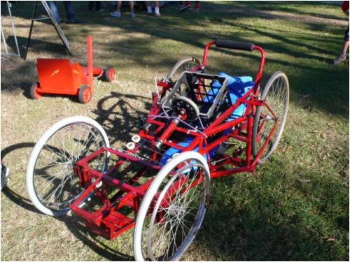 Sorry , I didn't check for feedback this morning , too much wind so I was pretty excited as you can see from my post on windmills . The race was today 18th at caringdale . Nic got knocked out in the first race , he needed some more weight to get more acceleration down the ramp to give more speed on the flat section . Next year we will strap on a few house bricks . Excellent day , some great stacks and crazy billy carts . Check this one out , he was in the over 17 sect , a retired guy with to much time .....