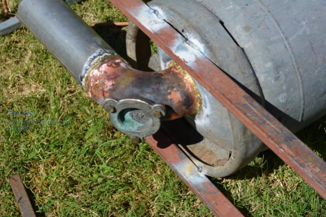 At the base there is a 100mm copper elbow brazed onto the base and a piece of SS flew pipe for the fan/airflow.