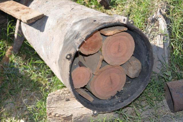 This picture is from early times, wood was a little oversize and it was gum, but still made good charcoal, not as good as ironbark though. I have since burnt the arse out of that steel container and will be building a new one from a gas cylinder, if/when I have spare time.