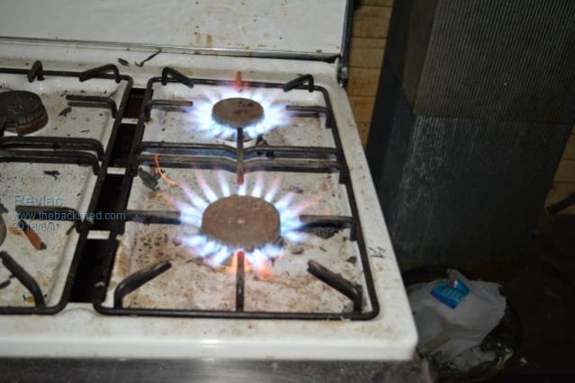 This is where some of the gas was used, the old gas stove has had slightly larger jets put in and the airflow restricted a bit more than if its was on lpg. (I don't buy LPG anymore).