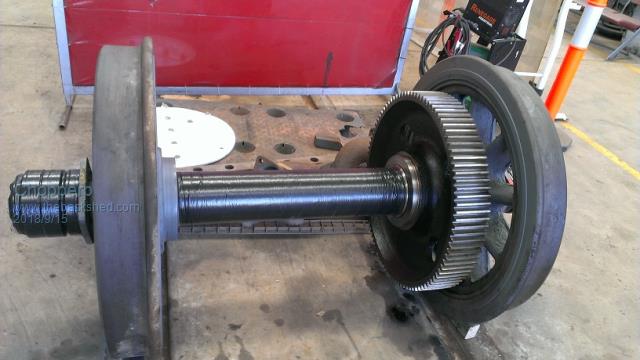 Hi Aaron, Than ks for your comments. The Loco axle will be send to a local firm which has the only lathe big enough up here to handle it. Expensive but we do get "Mates Rates". There's a 6-8 wk turn around time at the moment. This one should be relatively easy for them. (They had fun doing the Steam Loco ones as they have counter weights built into the driving wheels. They had to be balanced prior to machining. See Photo). Speaking of damage. We did notice yesterday that some of the "spokes" on one of the Loco wheels were bent a tad. May have been a "Casting Error" Some more Piccies FYI. Was looking of one of DP13"s wheels but couldn't find any. ![]() Other Drive Axle Showing 2 of the 4 Chipped Teeth. Hopefully, they can be repaired. ![]() DP13's Motorised Bogey up on rollers (Rear) for testing ![]() Steam Loco's Wheels back from being re-profiled ChopperP |