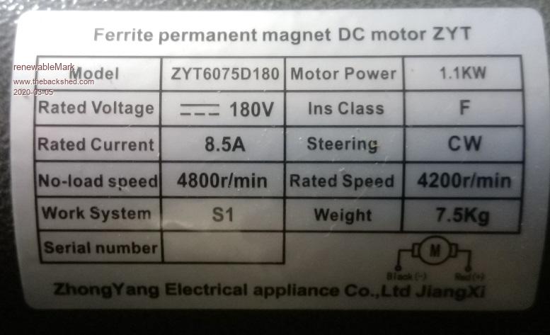 The problem with feeding it through an mppt solar controller is that the controller will discover that the more it loads down the generator, the higher the measured power climbs. The generator, and possibly the engine might not be too happy about that situation. What I plan to try (yet unproven) is to just connect up the generator through a diode direct to the battery, then very strictly control the rpm of the engine and generator with an electronic speed governor so nothing is overloaded with a dead flat battery. For your system, the theory might go something like this: The motor runs at 4,800 rpm with 180v applied and no load. When fully loaded the speed falls to 4,200 rpm at 8.5 amps.So under full load we lose 600rpm at 8.5 amps. When designing the transformers for your Warpverter, I think we worked out that minimum battery voltage ever reached might be 44 volts. So we run the generator at an rpm that just reaches 8.5 amps at 44 volts when its fully loaded. Now if we turn the generator at 4,800 rpm open circuit, we should see 180 volts. If we reduce the speed down to to 1,173 we might expect 44 volts unloaded. At full load 8.5 amps as a generator we add 600 rpm to that. So if we govern our drive speed strictly to 1,773 rpm We might expect to see something like 8.5 amps of charging at 44v, which will slowly taper off as the battery voltage ramps up. Its not a lot of power. 44v and 8.5 amps is only 374 watts unfortunately. But its simple and with multiple treadmill motors may even be practical. Anything else requires a pretty complicated control system to keep both the generator and battery both working safely. I hope to get around this firstly by having a higher voltage battery, my minimum voltage is more like 95 volts, and with the forced air blower on the generator can probably push that a bit harder than the 8.5 amps I assume my generator is rated at. It has no rating plate, so I am a bit in the dark. But through an internet search I think I have nailed down the make and model from pictures and measurements. If it will charge at 1Kw that is more than I need to run the house load with enough extra for battery charging as I only have a 60Ah battery anyway. Cheers, Tony. |