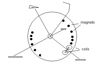 Now the interesting bit is that magnets are not uniformly placed around the wheel but instead are grouped so that maximum generator effect occurs at the two points in the cycle where pedal pressure is highest and none, or very few, when the pedals are at top and bottom.