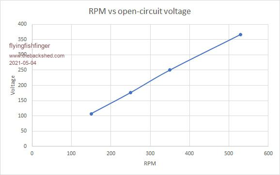 Fully loaded it will be slowed down to about 250 rpm and perhaps a theoretical 170 volts.