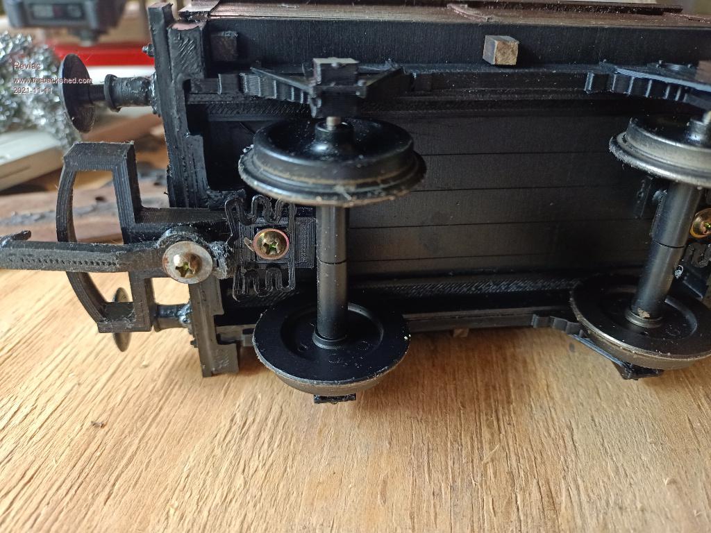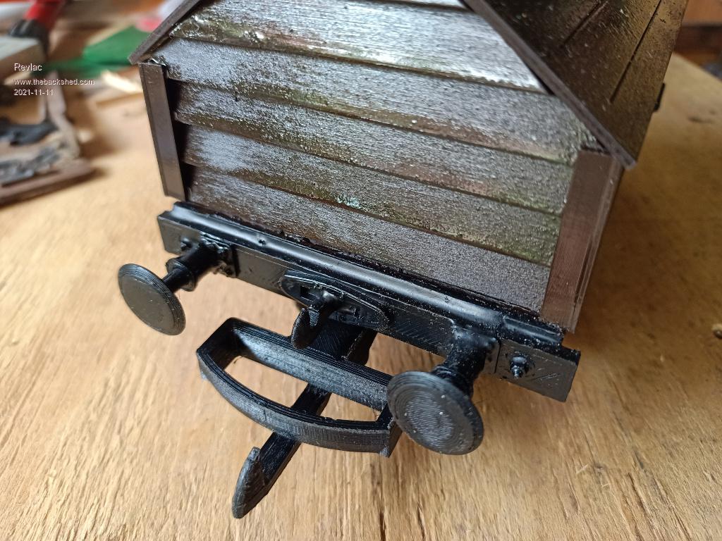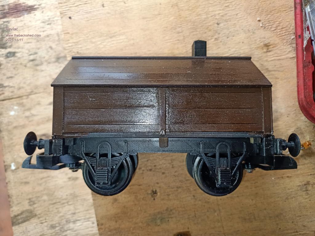 This is the same 4 wheel wagon, just as a flat top, can put something on it to give it a load. ![]() Another 4 wheel wagon, this one I made up into a box wagon, the door needs hinges still or I might even make up another door a bit different, the roof is (inside) is laser cut ply using the living hinge addon in Inkscape. The roof is corrugated card board, looks ok but would like to build a proper corrugated iron roller and use aluminium instead, there would be several rollers in series to do the job, found coke cans will split if rolled in one pair of rollers... Or find some softer aluminium sheet, will figure that out later, another job for the lathe. ![]() This is a larger wagon, still a work in progress, But I like the way its going, It has exceeded the length limits of the K40 laser cutter when I designed it, so the stepper motor skipped a few steps when it hit the stopper, will have to design it in 2 parts....or grind the stopper back at each end so there is more travel. Not my bogie design, credit goes to the person that designed it, Edited 2021-11-13 22:43 by Revlac Cheers Aaron Off The Grid |