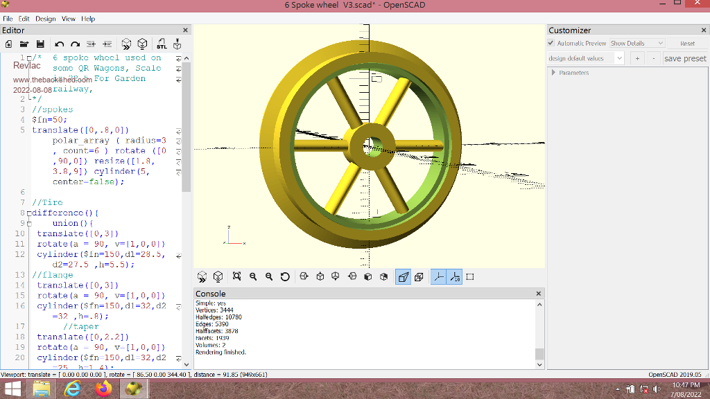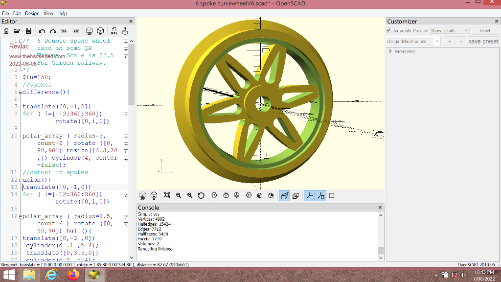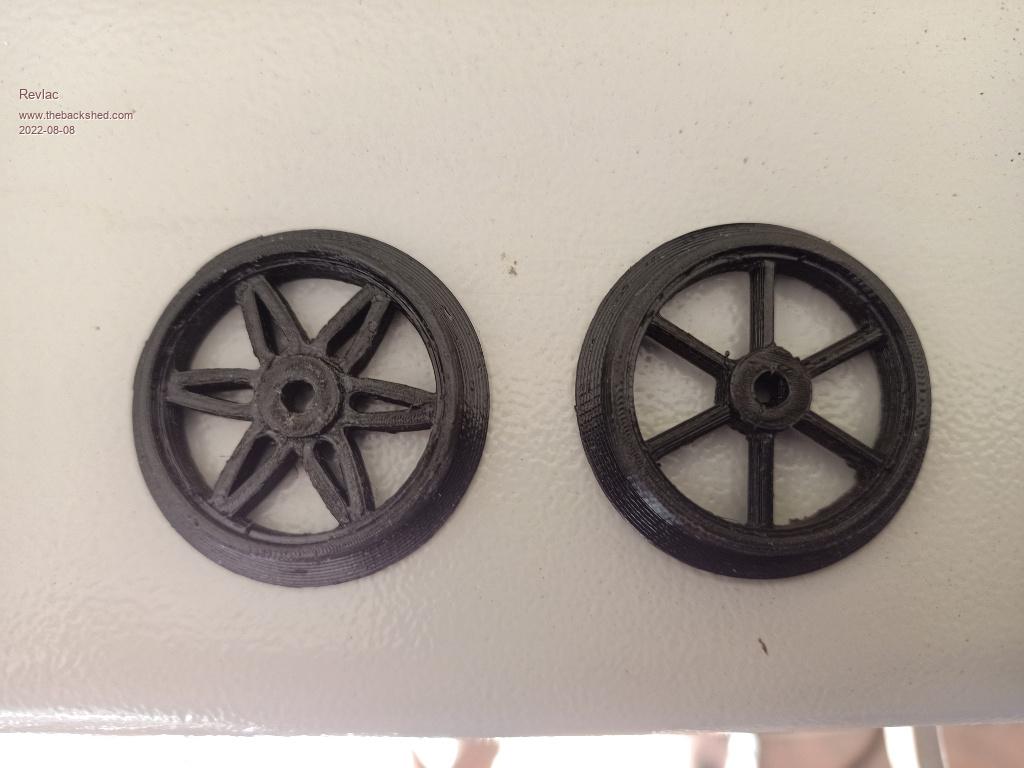 Made some wheels, mostly because I could not find this type anywhere and its a little more like the real ones that were used on early QGR carriages. After a few different experiments in OpenScad, eventually I worked out how to do the spokes for these wheels, and I'm quite happy with the way they turned out. They are modelled off real wheels, not perfect but they look the part. ![]() ![]() Printed these in PETG so there is a few little strings still attached, perhaps some printer setting need a little adjustment. ![]() wheels.zip Cheers Aaron Off The Grid |
