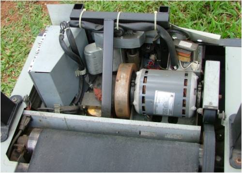 Below is the drive of the larger treadmill ( weights a tonne, just getting the thing off the trailer was a workout! ). AC induction motor, no HP or watt stamp. There's another motor in there on a jacking screw to tilt the treadmill up and down.