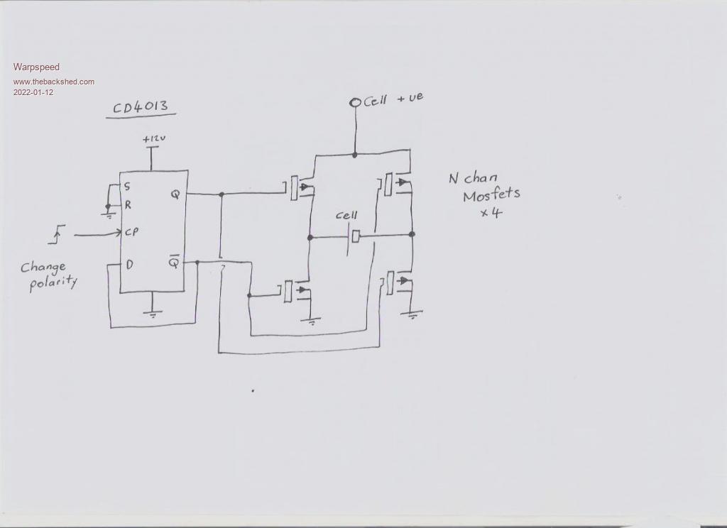 One thing to note about the sex change circuit. You must discharge the cell to less than 0.5 volts before inverting the polarity, if you don't the inverse diodes in the mosfets might be a problem. Also when reconnecting a fully charged cell, it must go in the right way around or once again there might be a problem diode right across the cell that causes a high uncontrolled discharge current. A simple fix would be to fit a couple of red leds connected to the flip flop to show which cell terminal is currently the (safe) positive side. A constant current cell discharger is pretty easy to make, its only a few components if its going to make all this a lot easier. Edited 2022-01-15 14:46 by Warpspeed Cheers, Tony. |