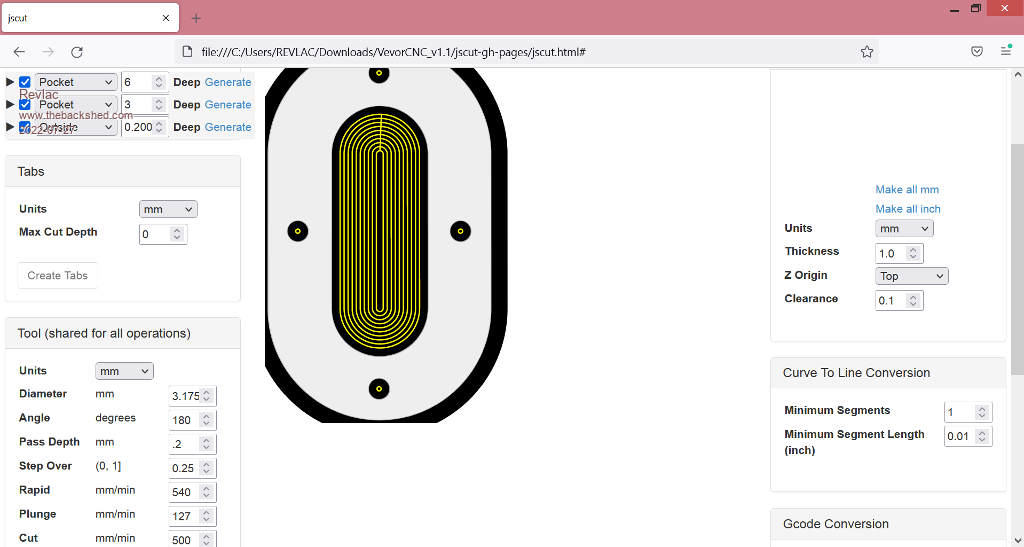 Drawn up the outline in Inkscape then opened it in jscut to edit and convert it to Gcode, to be Cut with the little 3018 Pro CNC mill.