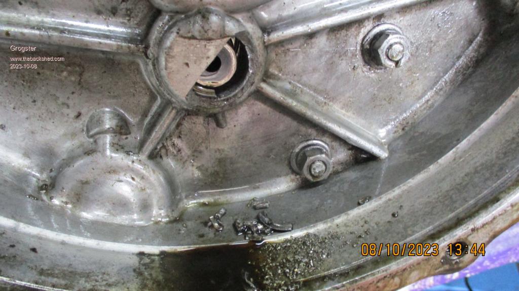 It basically just rubbed itself to bits, with metal debris eventually getting picked up by the drop-gear arrangement, and blowing teeth of the intermediate gear, and knocking a large hole right through the clutch cover housing!