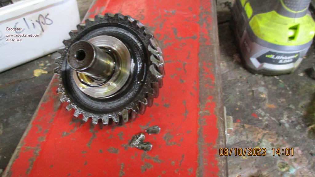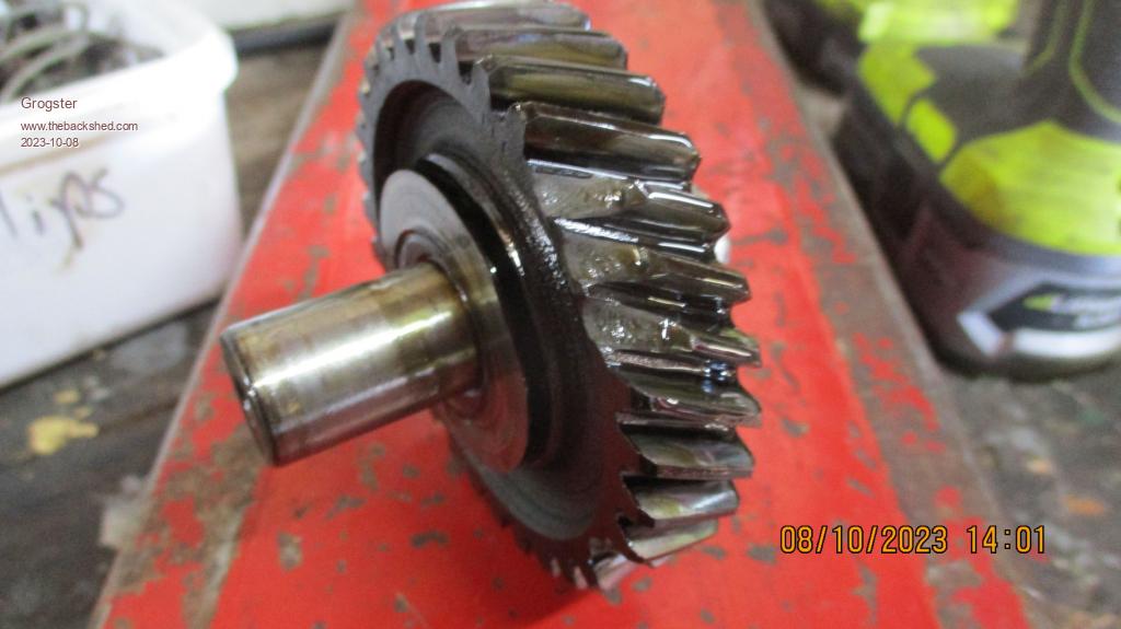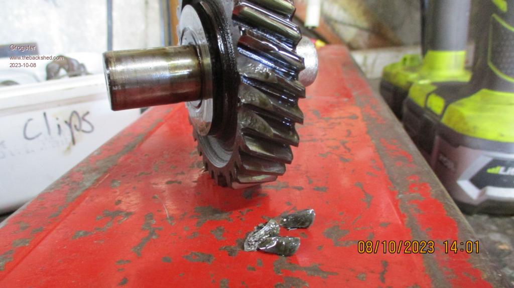 When they put the engine back onto the gearbox, they used a home-made gasket between the engine/box and the clutch housing(they admitted that), and that is a BIG no-no, as the correct gaskets are thick by design, and you torque them down while measuring  the end-float on the intermediate gear and it's thrust washers to make sure everything is good.  Putting a home-made gasket on, made out of thin gasket cardboard means the clearances are all screwed up, and this is the end result - which is not good.....