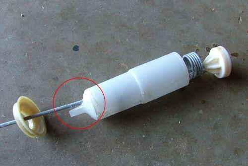 The one above has the area circles where it wears through. Replacing all four dampers has fixed the problem, the washer has so far completed two wash cycles without missing a beat. While I had the machine apart I replaced the top bearing, a 6005. The seal was starting to leak and this bearing was on the way out. I also swapped the drive shaft for another, the old one had very deep groves where the seal was riding, so hopefully it will seal ok now. No drips so far.