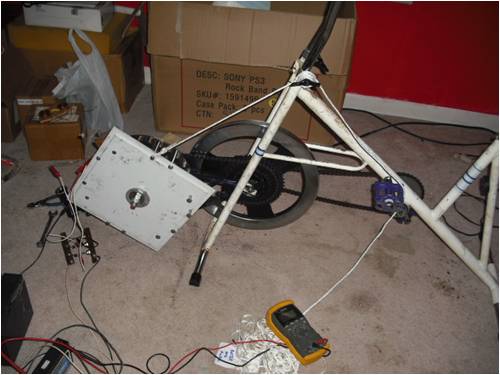 One note i could add about the flywheel , before i added the PMG the flywheel will spin by itself for about 15 minutes on momentum alone when pedaled fast and let go. Another thing i got lucky about was the flywheel has a ratcheting thingy in the hub , what i mean is that you can stop pedaling at any time and the flywheel and alternator will continue on its way.