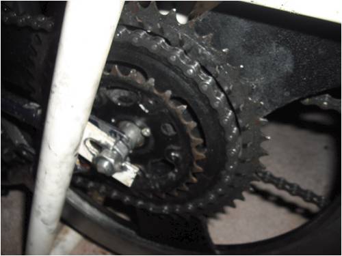 This is a close up of the right sprocket , where it attaches to the flywheel.
