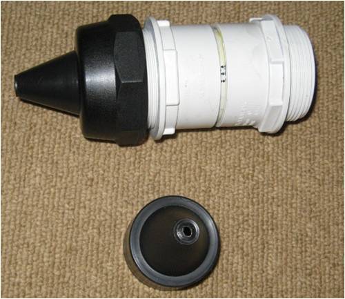 The jet block and conical jets. The jet nozzle can be cut to allow different holes sizes for less/more flow: