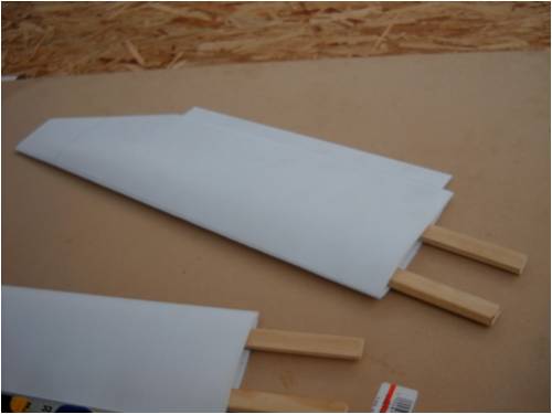The wing span will be in the neighborhood of 48" give or take, depending on how wide I make the fuse. The wings are being constructed out of 4mm Coroflute plastic. Building the wing is just a matter of laying it out, folding and gluing in place. Kind of like an "origami" airplane, if you will.