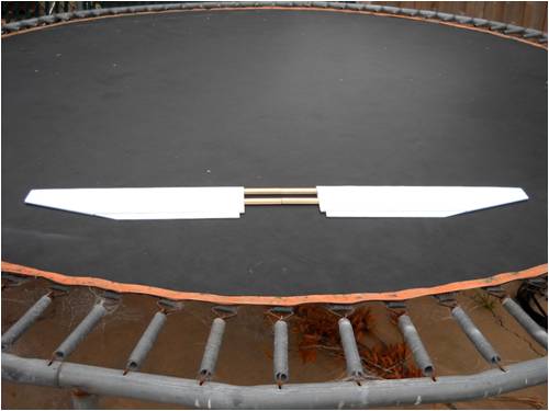 Here are both wing halves lying side by side on the kids' trampoline