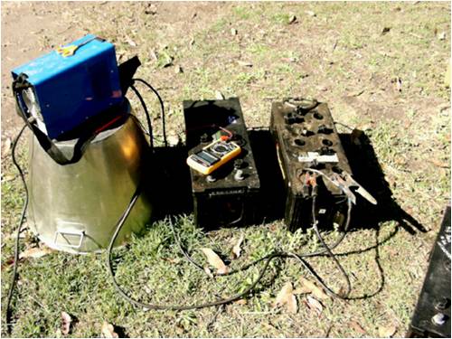 Step 3: King hit, connected my DC inverter welder with output voltage of 60 volts across the batteries one at a time 5 minuets on and 5 minuets off for an hour this started them absorbing a bit of current.