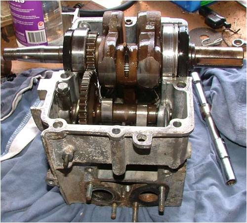 Pulled the motor bottem end apart. The crank bearings are a bit loose, as was the big end bearing. Piston compression rings ok, but oil ring stuck. I broke the oil ring trying to free it, so time to do some research and find some replacement parts.