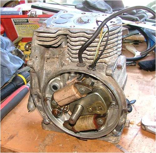 Put it all back together and fired it up. Started easily enough, but the motor was very noisey, mechanically, and lots of blue smoke. Bugger, needs new rings and bearings. While I had the motor running, I tested the alternator side of things and it works fine. I ran a 600 watt power drill without any noticable slow down, so at least that side of things was good to go.