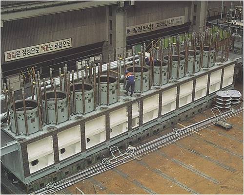 The Wartsila-Sulzer RTA96-C turbocharged two-stroke diesel engine is the most powerful and most efficient prime-mover in the world today. The Aioi Works of Japan 's Diesel United, Ltd built the first engines and is where some of these pictures were taken. It is available in 6 through 14 cylinder versions, all are inline engines. These engines were designed primarily for very large container ships. Ship owners like a single engine/single propeller design and the new generation of larger container ships needed a bigger engine to propel them. The cylinder bore is just under 38" and the stroke is just over 98". Each cylinder displaces 111,143 cubic inches (1820 liters) and produces 7780 horsepower. Total displacement comes out to 1,556,002 cubic inches (25,480 liters) for the fourteen cylinder version.