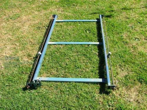 The other problem was its size. It had a work area of 500*1000*150mm, and the overall machine was about 700*1500*500. Too big for a small workshop. So I decided to cut it down. Here's the bottom chassis before I took to it with the cut off saw.
