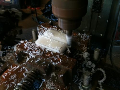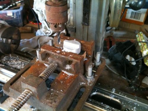 I cut it square so I could rotate it 90 deg. Marked the center point and drilled a 8mm hole, to suit the 8mm shaft size. I then used this hole to find the middle line on both sides.