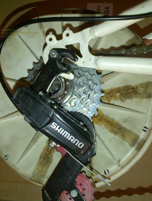 So I've decided to attach the smart drive to an indoor trainer, its a 42 pole 60 series (I think its 0.6mm, my digital vernia needs batteries). its wired as 7X2C and I've de cogged the poles. as you can see in the picture the wheel turns the drive shaft and with no electrical load it works well...