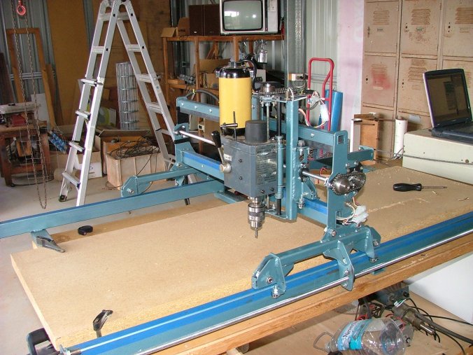 Nah the router head itself was the milling attachment from my lathe. I never used it, and it often got in the way when using the lathe, so I thought it would be good on the router. It has a electronic speed control and a 2 speed gearbox, plus a 500 watt motor, and its quiet compared to a hand router. The stepper motors drive the router head around the table.