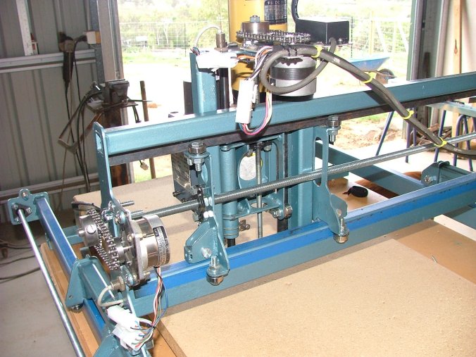 And around the back, you can see the lead screws and stepper drives. Using chain and threaded rod is not the best way of doing this, but they are cheap.