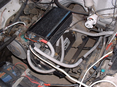 The other reason is, I wanted the space for the Zivan NG3 charger. I could not put the charger above the motor because it is not sealed against water ingress. Here in the front corner is ok for it. I have driven in rain, and has not been a problem.