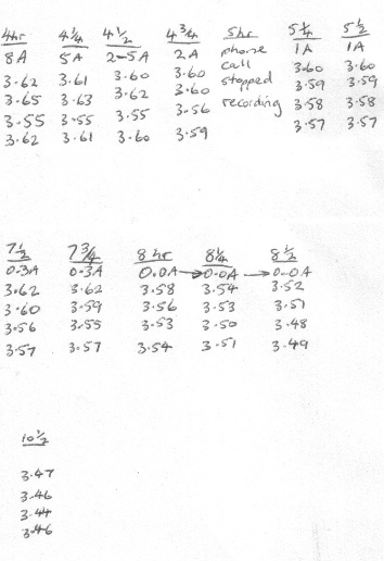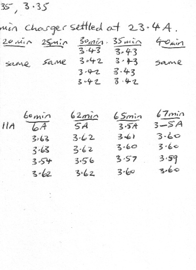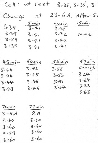 This was just too good to be true, but no joke thats the numbers measured. The next was to see what happens under discharge. And then another recharge. I am tired of typing, I will try to copy my hand notes.