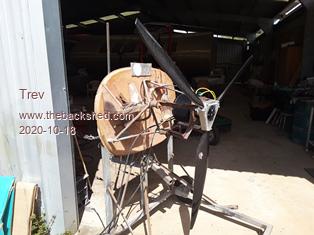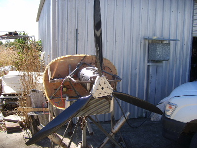 This motor would be good if we used a reduction drive, but we were hoping that we could do it direct drive. We changed the pitch of the propellar with some increase in pulling power. The next test will be with a shorter prop, smaller diameter.