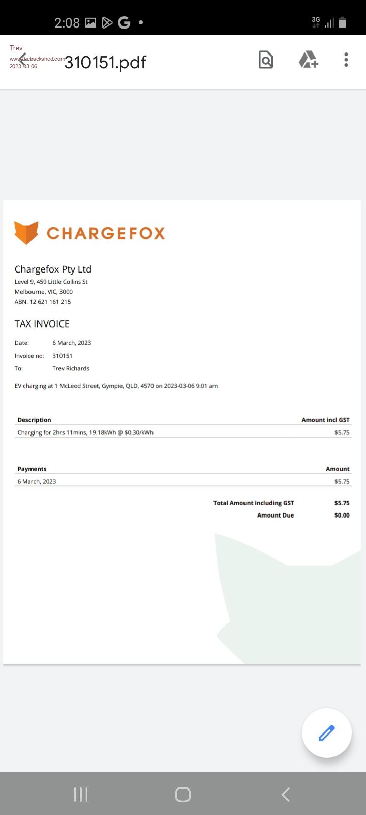 Somehow I lost the screen when I went to disconnect, so this is the invoice Chargefox emailed.