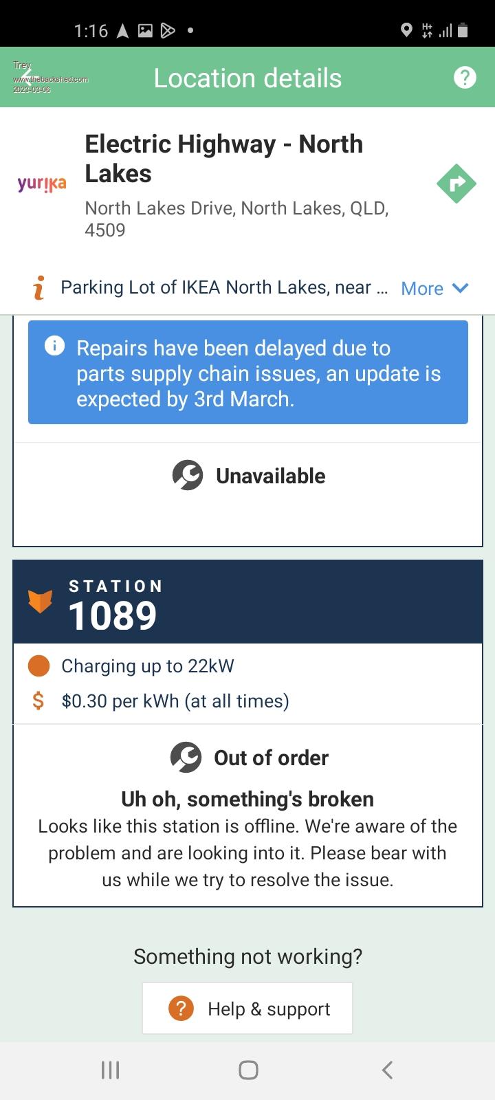 Sometimes charge points don't work or for some reason you have to find another one. I missed Miriam Vale because I saw on plugshare 2 Tesla's stranded. I knew I would not get access to the outlet till some time this morning if I went there. If a charger doesn't work, you have to report it, that can take a very long time. If you don't report it, it won't get on the fix me list.