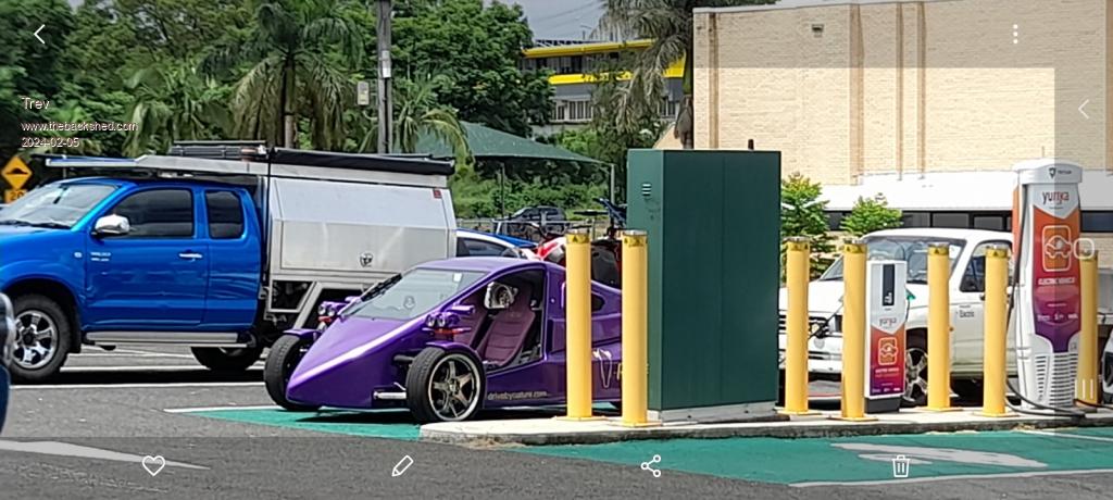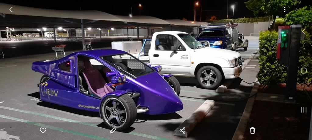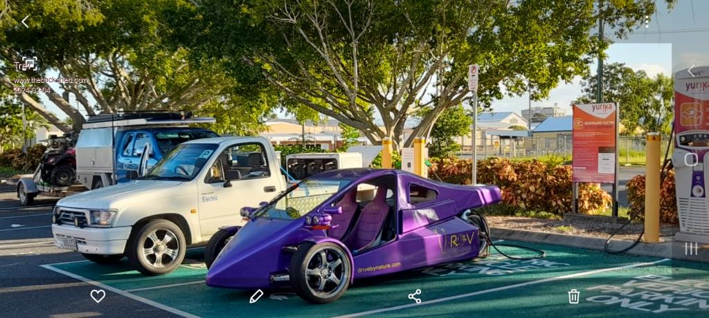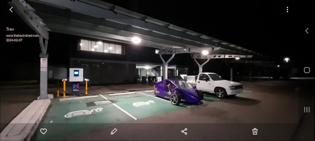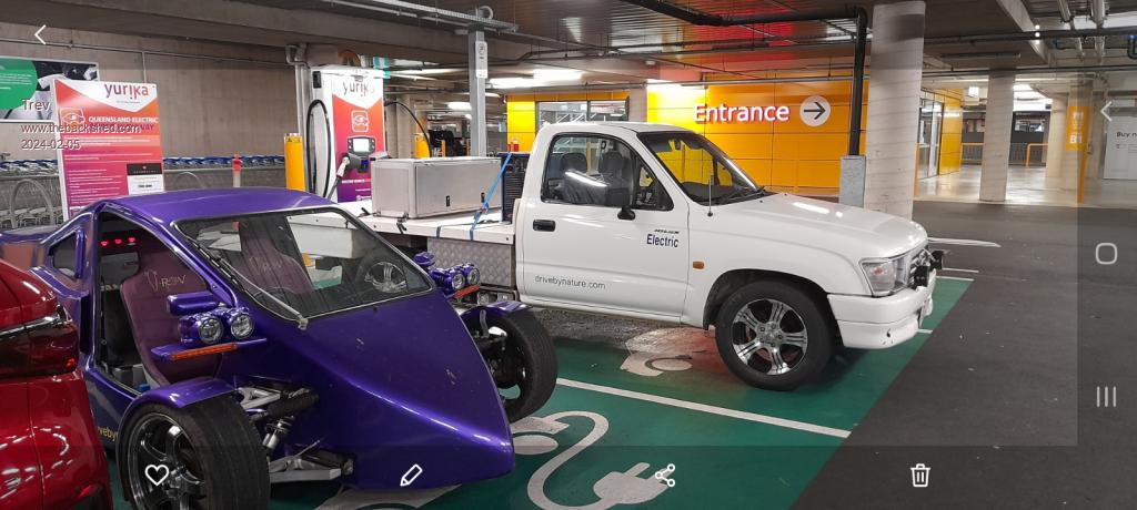 Drove to Port Macquarie and charged. Free to charge. Had to wait for another EV to vacate, to get T-Rev in. EV Hilux took the only bay left, when we got there.