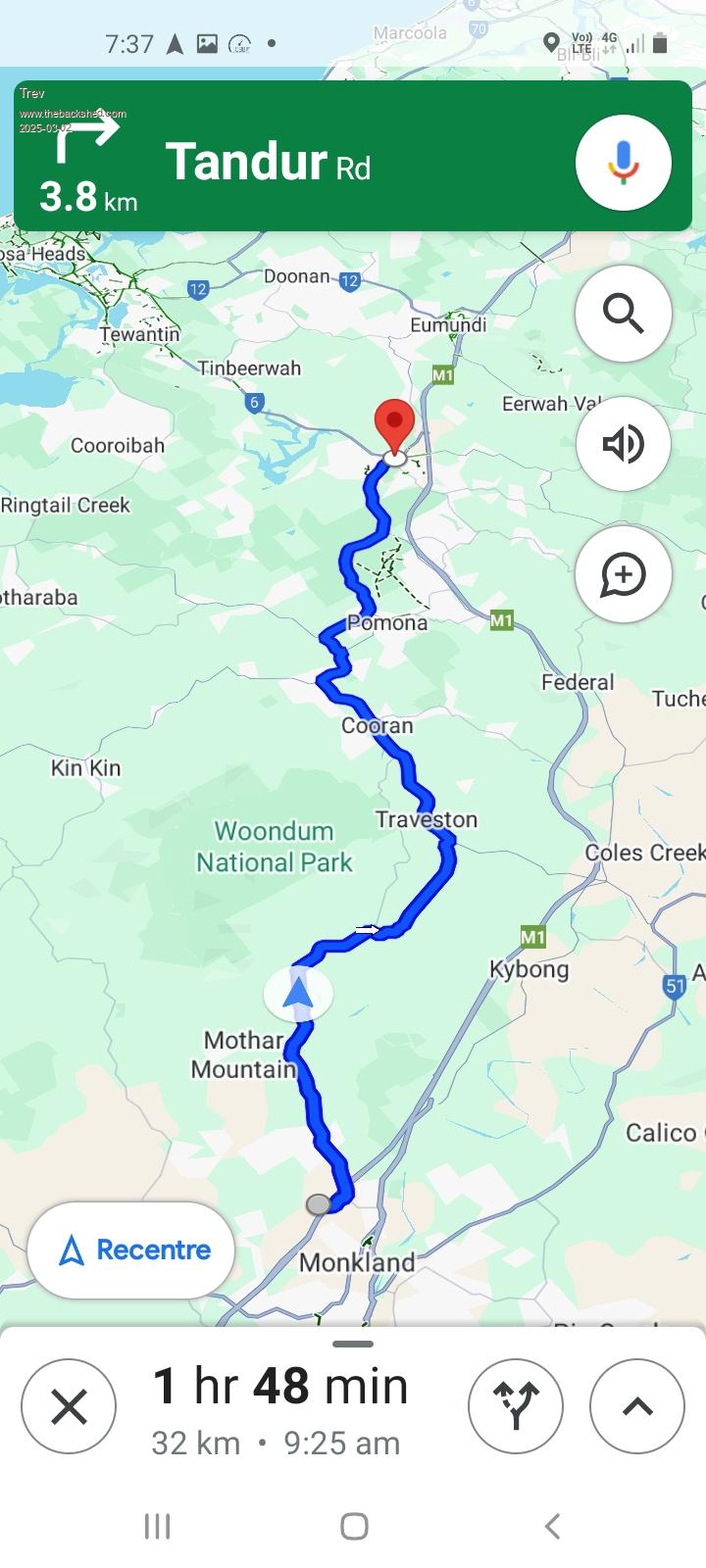 Drove to Cooroy. Skinny took me on a scenic tour, 32km through the mountains. Google maps, I call her skinny. She has to be skinny to fit in my phone. Up and down, round and round. Swapping roads, must have been like 10 different roads or something. See the freeway to the right of skinnies billy goat track.