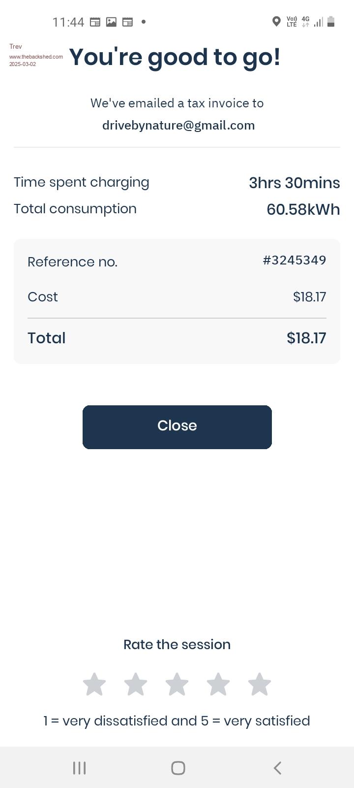 No charge data from Mid Coast Council as it is a free outlet. Thanks heaps. I noticed 2 new wall outlets and wires hanging out of the wall for a third outlet