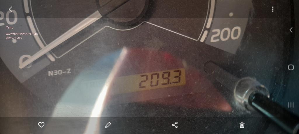 Drove 209km mostly at 80km/hr.