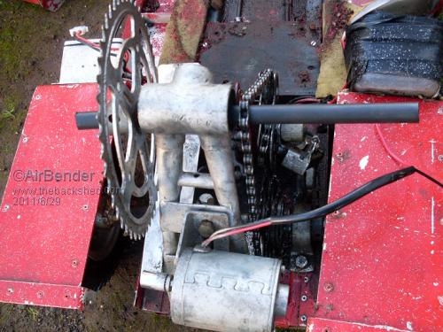 This set up worked very well I can only remember it losing a chain once in years of operation. Just a normal bike derailer was used.