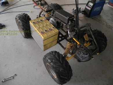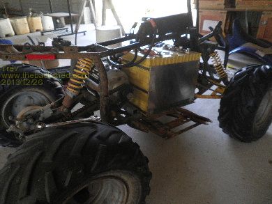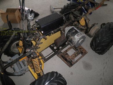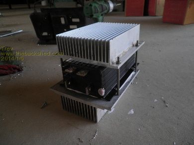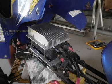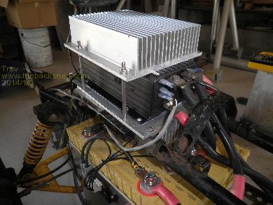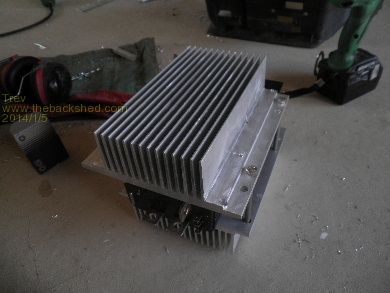 We have added heat sinks to the sped controller as well. I have about 30kg of heat sinks I got for scrap price and so worked out how to fit 2 of them. The bottom heat sink had to have 2 fins removed so it would fit between the 4 wheeler frame. Checked out the positions and set about mounting it all together on the floor. The bottom one had to be offset to the top one.